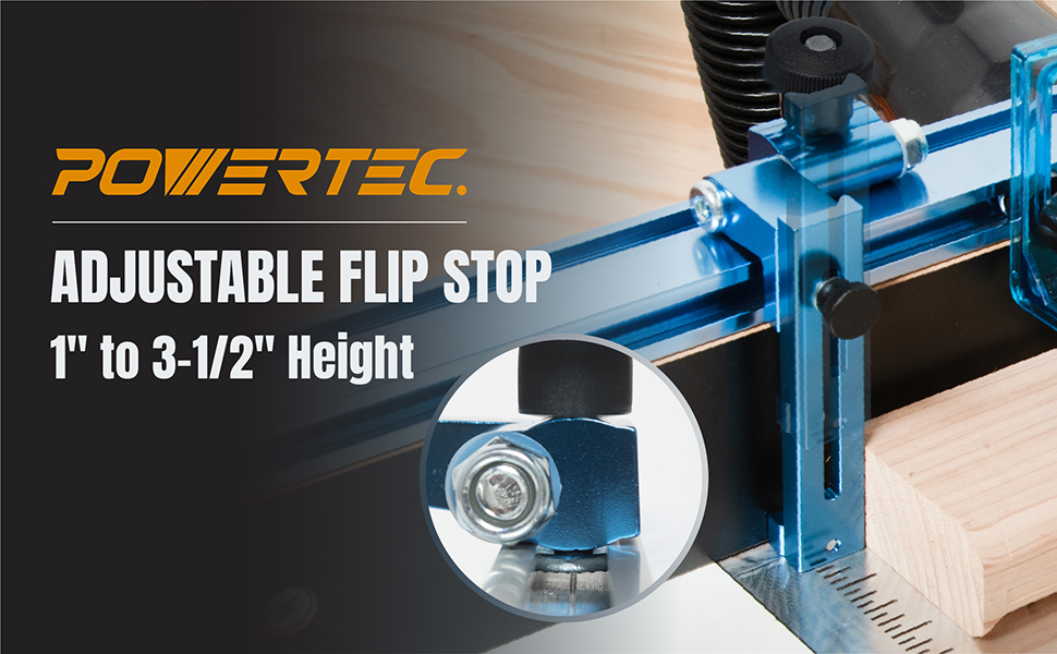 - PREMIUM: The corrosion resistant aluminum flip stop, a patent-pending invention, possesses a heavy-duty construction for long-term durability, intended to withstand the scratches and abrasive nature of woodworking applications.