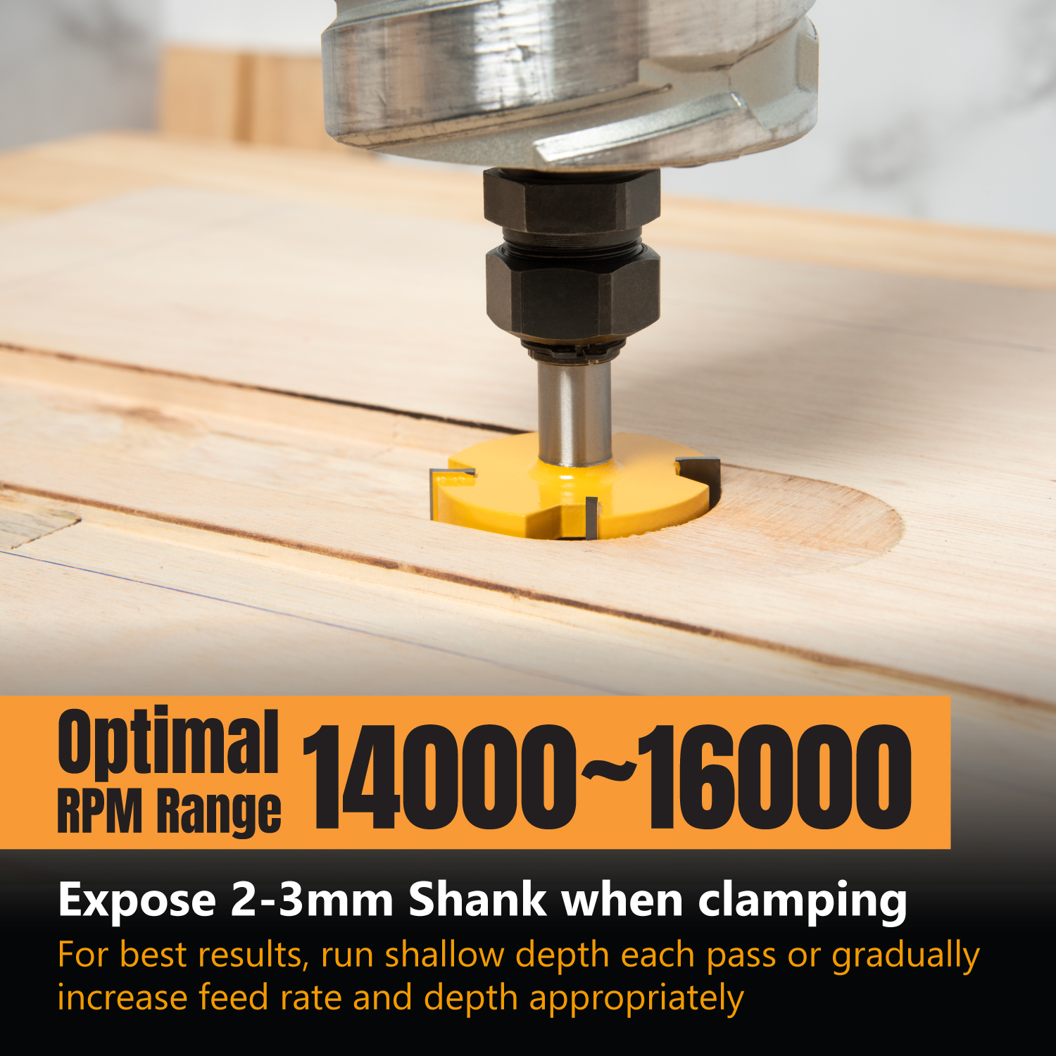 Built to Last: Crafted from robust carbon steel with tungsten carbide tipped inserts, this router bit delivers exceptional longevity and sharpness. The anti-kickback design ensures safe and controlled operation, minimizing vibration and chatter for a superior finish.