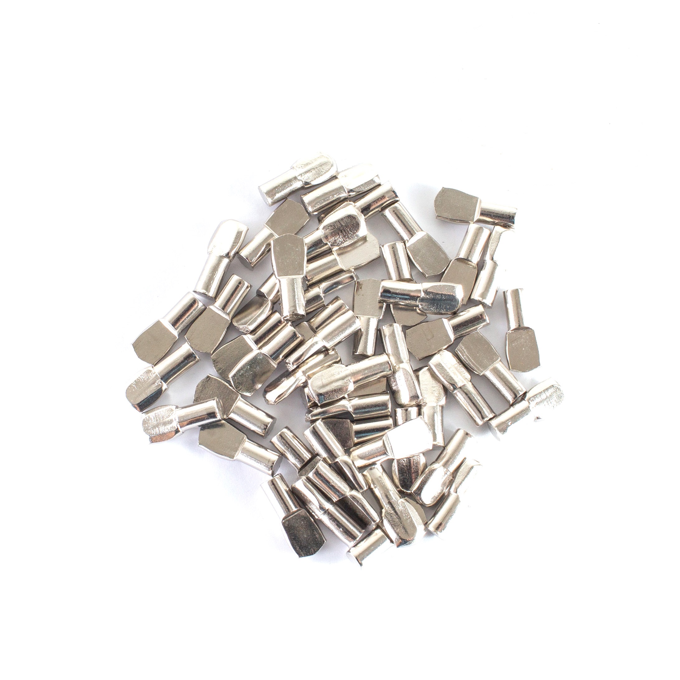 These shelf pins are designed to provide premium support for shelving in your wood cabinets and furniture. Polished with a beautiful nickel finish, these high quality metal pegs fit perfectly into pre-drilled shelf pin holes. Featuring both a flat spoon design with a 5mm diameter shaft and a solid metal pin construction to offer you dependable and long-lasting shelf peg support. Metal shelf Pegs 5 mm ensure a perfect fit into your 5mm shelf holes. A great alternative to IKEA pegs for shelves. These well made shelf pins are great for replacing cheaper plastic pins in your furniture and shelving projects and repair.
